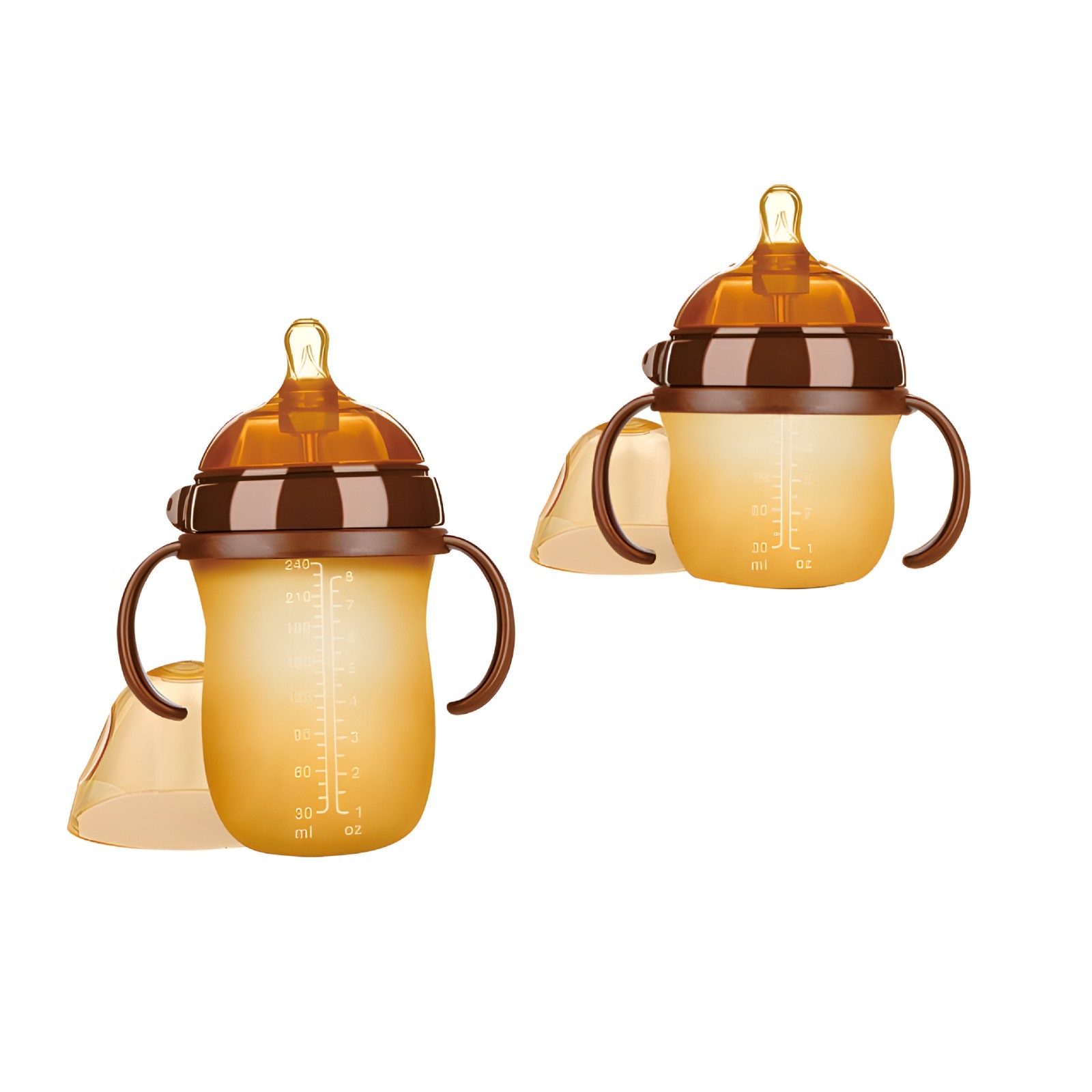婴儿用品纳米银硅胶抗菌超软弧形大口径防胀气手柄奶瓶
