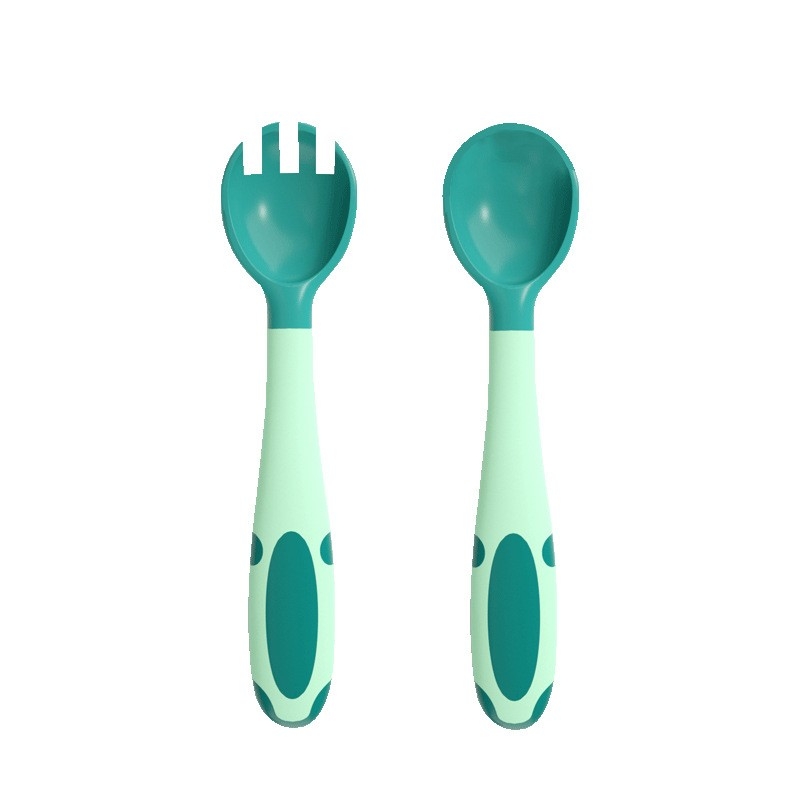 婴儿感温叉勺子可弯曲训练宝宝吃饭辅食硅胶软头勺